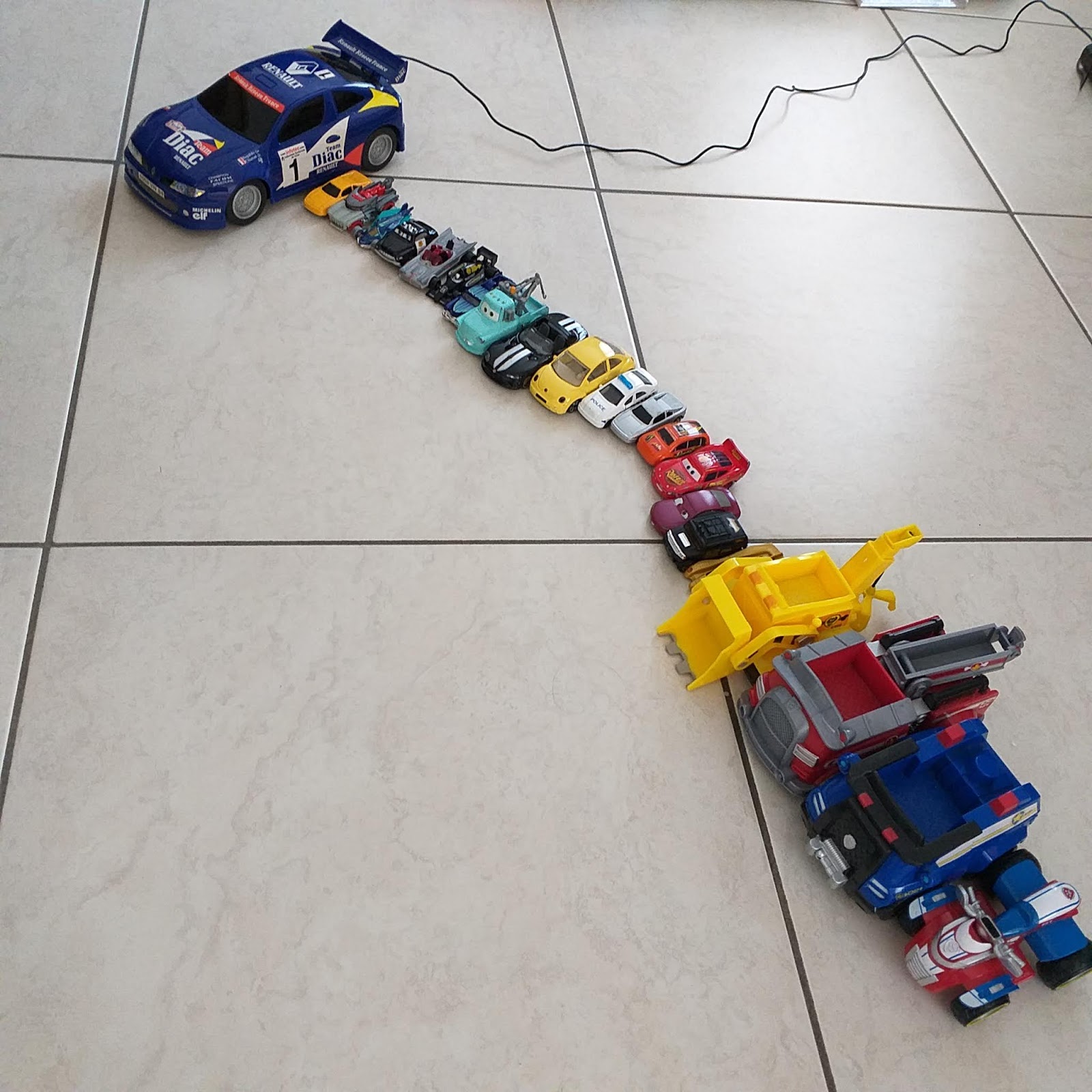 Kobe zette voor ons heel veel auto's op een rijtje...